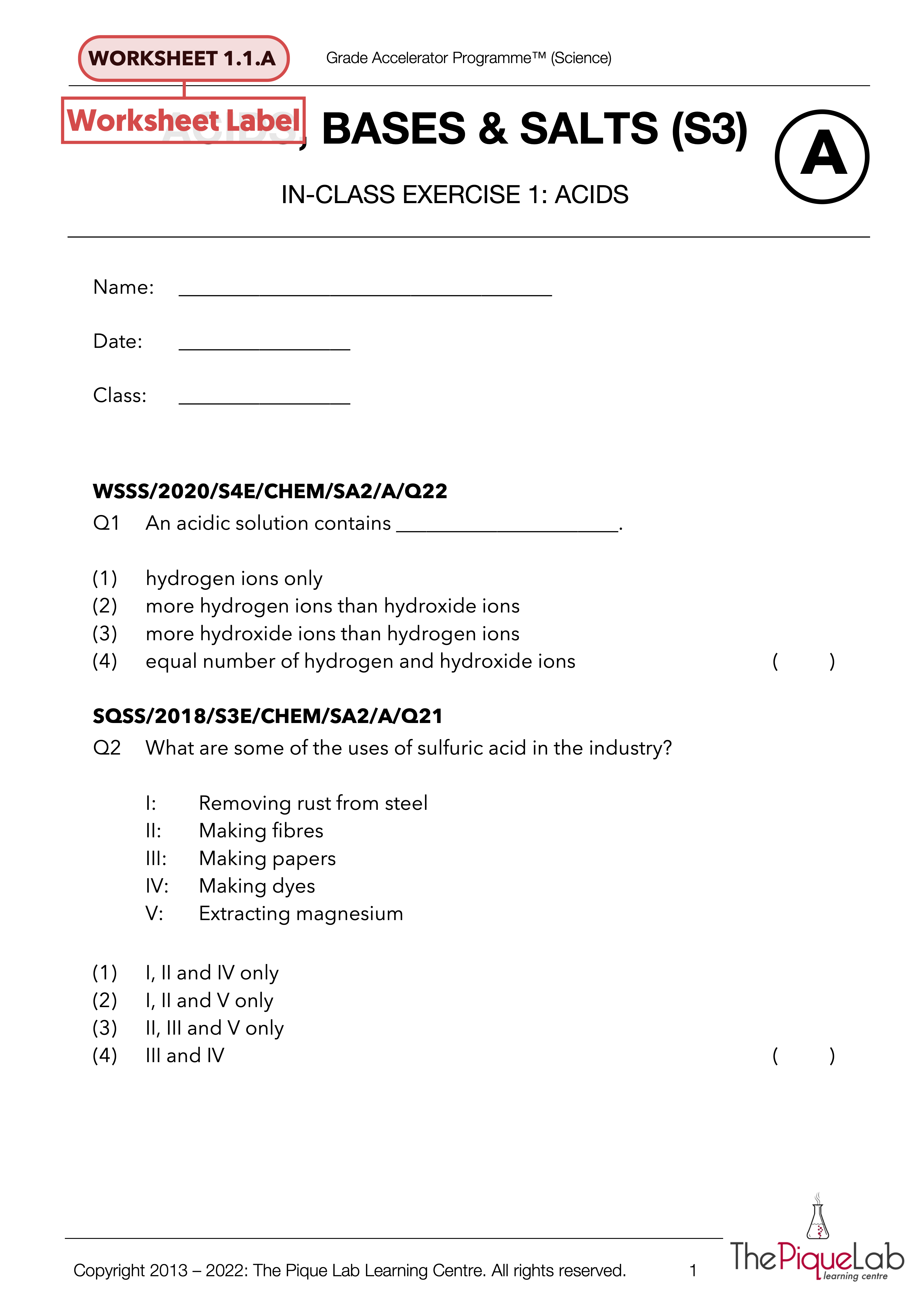 - Each worksheet is labelled with the worksheet label at the top left corner of each page.
